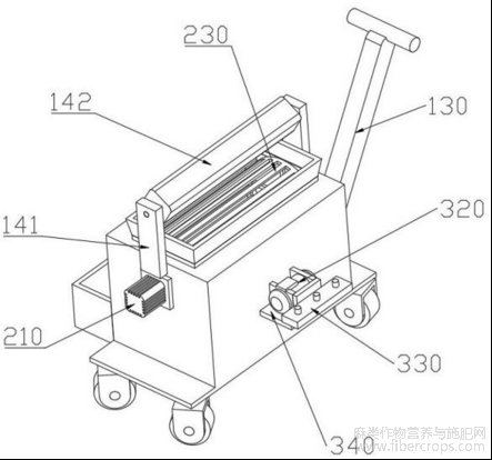 2.根据权利要求1所述的一种火麻种子收集器,其特征在于,所述收集行车机构(100)包括有收集安装主体(110)、万向行进轮(120)、推动把手(130)和控制部,所述万向行进轮
