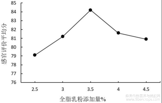 图3是本发明全脂乳粉添加量对芒果火麻仁饮料品质的影响图;