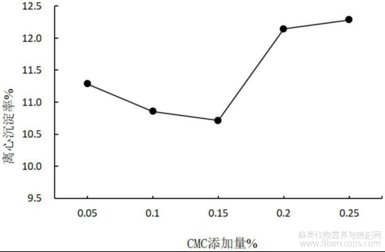 由图7可知,CMC-Na添加量对于饮料产品的离心沉淀率先呈下降趋势至最低点后升高,在CMC-Na添加量为0.15%时,饮料的离心沉淀率最低;当CMC-Na添加量不足或高于0.15%时,饮料的离心沉淀率上升。该现象出现的原因是静电相互作用力在CMC-Na、火麻仁中的油脂和蛋白质之间升高,导致饮料的乳浊体系由排斥絮凝转变为桥接絮凝,因此产品的饮料稳定性不断降低。