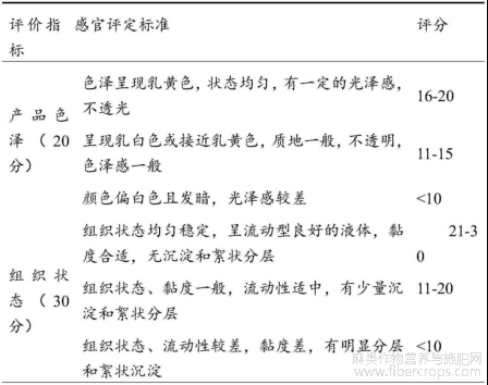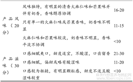 芒果火麻仁饮料的配方优化感官评价指标及评分标准数据如表所示。
