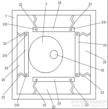 如图1至6所示,为了防止亚麻纤维泄漏,进一步,所述伸缩挡片23的上下两端分别 与上定位板21的下侧和下定位板22的上侧抵接。