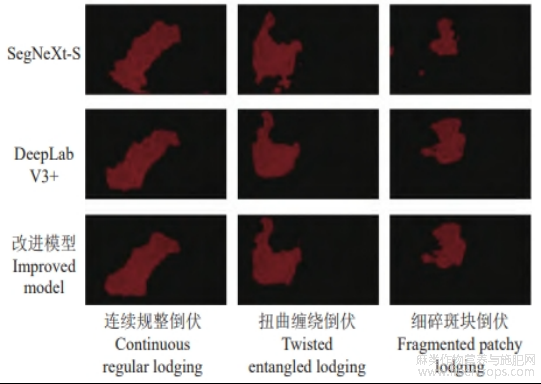 1)改进后的模型在自建数据集上的平均精确率可以达到95.96%,对比其他基础模型而言均有不同程度的提升。改进后的模型mPA和mIoU分别达到了92.55%和96.11%,验证了其在胡麻倒伏区域识别的有效性。