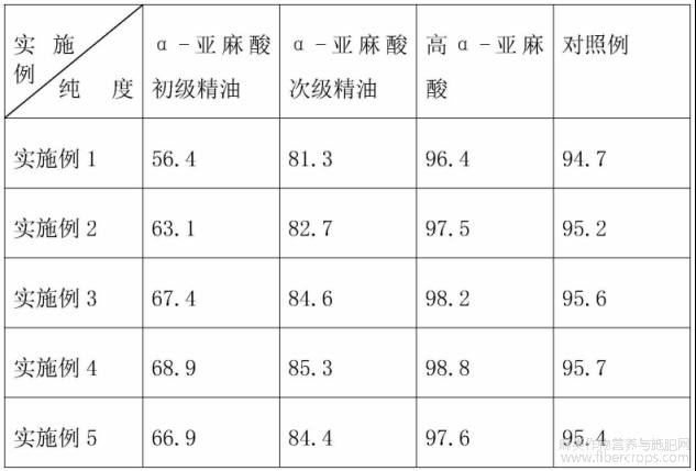另外,在实验过程中,分别采取步骤4)-步骤6)中得到的α-亚麻酸初级精油、α-亚麻酸次级精油和高α-亚麻酸样品,利用GC-FID(CP-Sil 88柱)来测定α-亚麻酸的纯度,具体结果如表2所示。