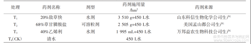 供试胡麻品种为陇亚13号,由甘肃省农业科学院作物研究所提供。催熟剂来源见表1。