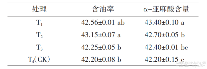 表7 不同药剂处理下胡麻含油率和α-亚麻酸含量 %