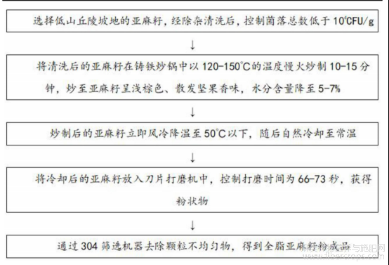请参阅图1所示,一种全脂亚麻籽粉的制备方法,包括以下步骤: