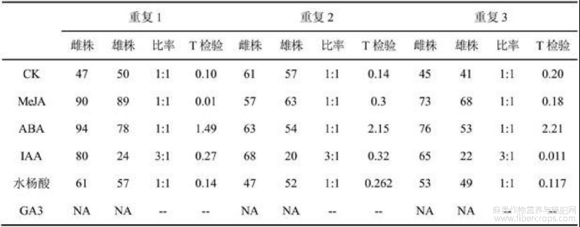 表2 不同激素处理对火麻性别分化的影响