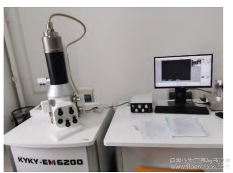 扫描电镜(SEM)为北京中科科仪股份有限公司生产的钨丝电子扫描纤维镜(KYKY-EM6200),放大倍率选择500~10000倍,分辨率3nm,如图3所示。