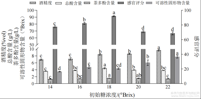 图 5 初始糖浓度对罗布麻茶蜂蜜酒品质的影响