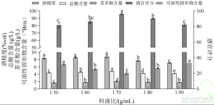 图 4 料液比对罗布麻茶蜂蜜酒品质的影响