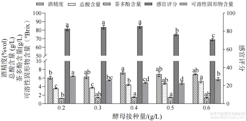 图2 酵母接种量对罗布麻茶蜂蜜酒品质的影响
