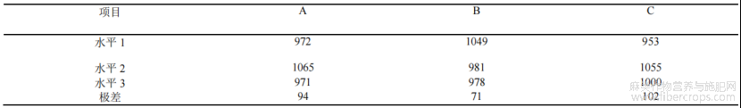 表5展示了3mm及以上毛羽之和与极差。由表5可见,因素A(后区牵伸倍数)的极差为374,因素B(捻系数)的极差为607,因素C(锭子转速)的极差为475。捻系数对纱线3mm及以上毛羽的影响最大,其次是锭子转速,最后是后区牵伸倍数。随着捻系数的增加,纱线3mm及以上毛羽呈现先减小后增加的趋势,当捻系数为378时,纱线3mm及以上毛羽最少。相比之下后区牵伸倍数和锭子转速对纱线3mm及以上毛羽根数也有一定程度影响。因此,在实际纺纱过程中,应优先调控捻系数,以实现对纱线毛羽的有效控制。