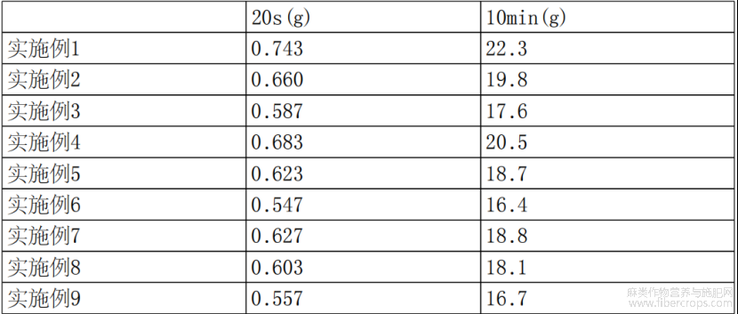 将实施例1-9制备的苎麻改性材料在190℃,2.16kg压力条件下,通过直径为2.1mm的圆管流出,计算10min内熔体流出的质量,结果如表2所示。