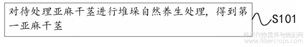 步骤S101,对待处理亚麻干茎进行堆垛自然养生处理,得到第一亚麻干茎。需要说