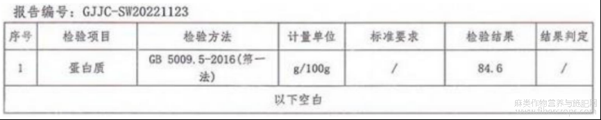 以下是摘选的本实施例的蛋白质含量部分检测报告: