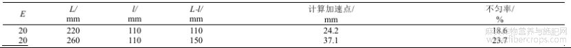 为探究苎麻纤维加速点与成纱不匀间的关联,本文设计不同牵伸隔距的对比实验:以5.6g/10m的苎麻粗纱为原料,在不同牵伸隔距条件下进行牵伸,纺制成28tex的纱。通过前文建立的理论模型计算不同实验条件下的纤维加速点位置,利用CT3000条干均匀度测试分析仪测试纺制纱的成纱不匀率,具体实验结果如表2所示。