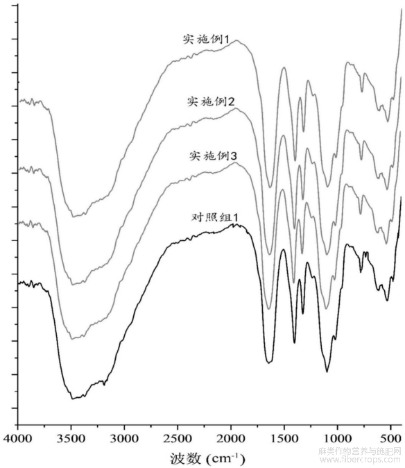图1为本发明实施例1-3和对照组1所制备的红麻果胶的红外光谱图。