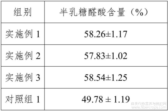 实施例1至3、对照组1的半乳糖醛酸含量测定结果见表1。