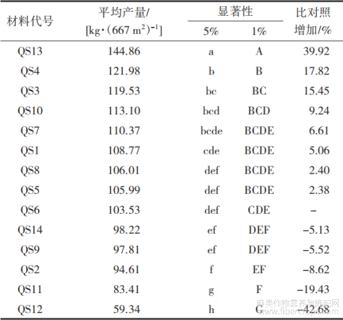 表2 产量差异比较表