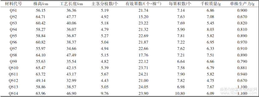 株高、工艺长度、分茎数、主茎分枝数、株果数、果